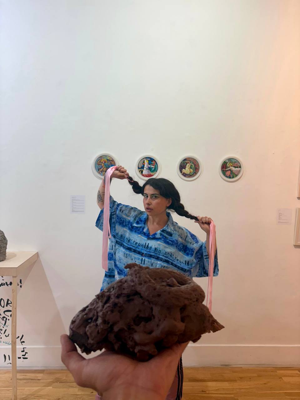 Her work has been exhibited in institutions and galleries such as Tøn Gallery, Project Arts Centre, Gallery X, and IMMA (Irish Museum of Modern Art), where she has also led workshops on sustainability and collective practices. She has additionally taken part in Dublin Independent Fashion Week and is currently continuing her artistic training at the Royal Hibernian Academy (RHA).